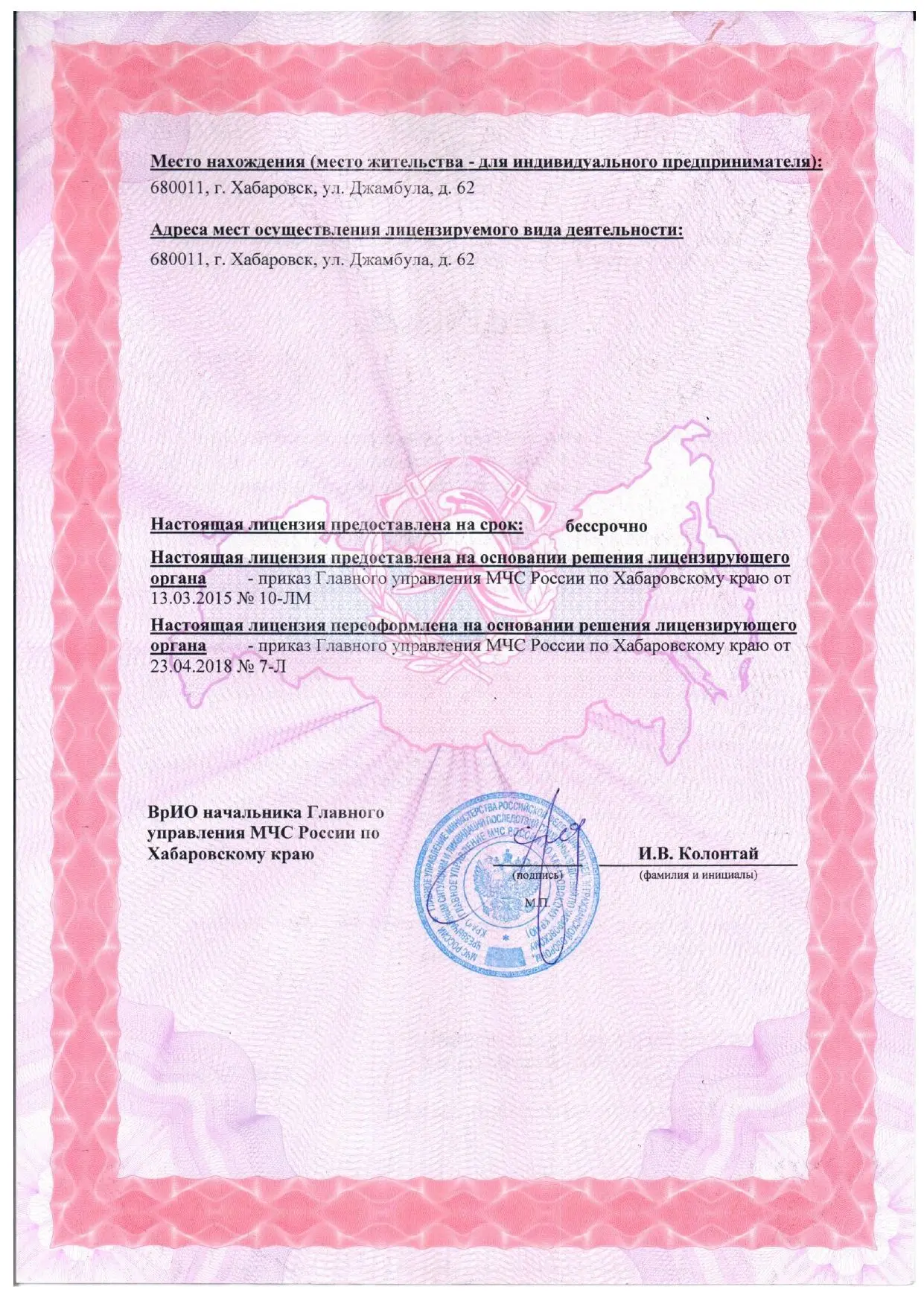 За 19 лет работы у нас сложился постоянный инженерно технический персонал – наши мастера по монтажу противопожарных преград (ворота, двери, окна, шторы) проводили работы на космодроме «Восточный», в главном офисе «Сбербанка» в г. Владивостоке, где мы устанавливали противопожарные стеклянные алюминиевые двери с системой «Антипаника», на Кинотеатре «Хабаровск»- мы смонтировали и до сих пор обслуживаем деревянные противопожарные дымогазонепроницаемые, звукоизоляционные двери; ведущие мастера по монтажу пожарной сигнализации и видеонаблюдения проводили работы на почти самой крайней точке Востока нашей страны, в пос. Беринговском, где в подзорную трубу видна Америка! Кроме того, нами были проведены работы на таких объектах как Арена «ЕРОФЕЙ», ТЦ «МАКСИМОЛЛ, ТЦ «ЭКОДОМ», Онкологический центр в г. Хабаровске, Аэропорт г. Анадыря и многих других.