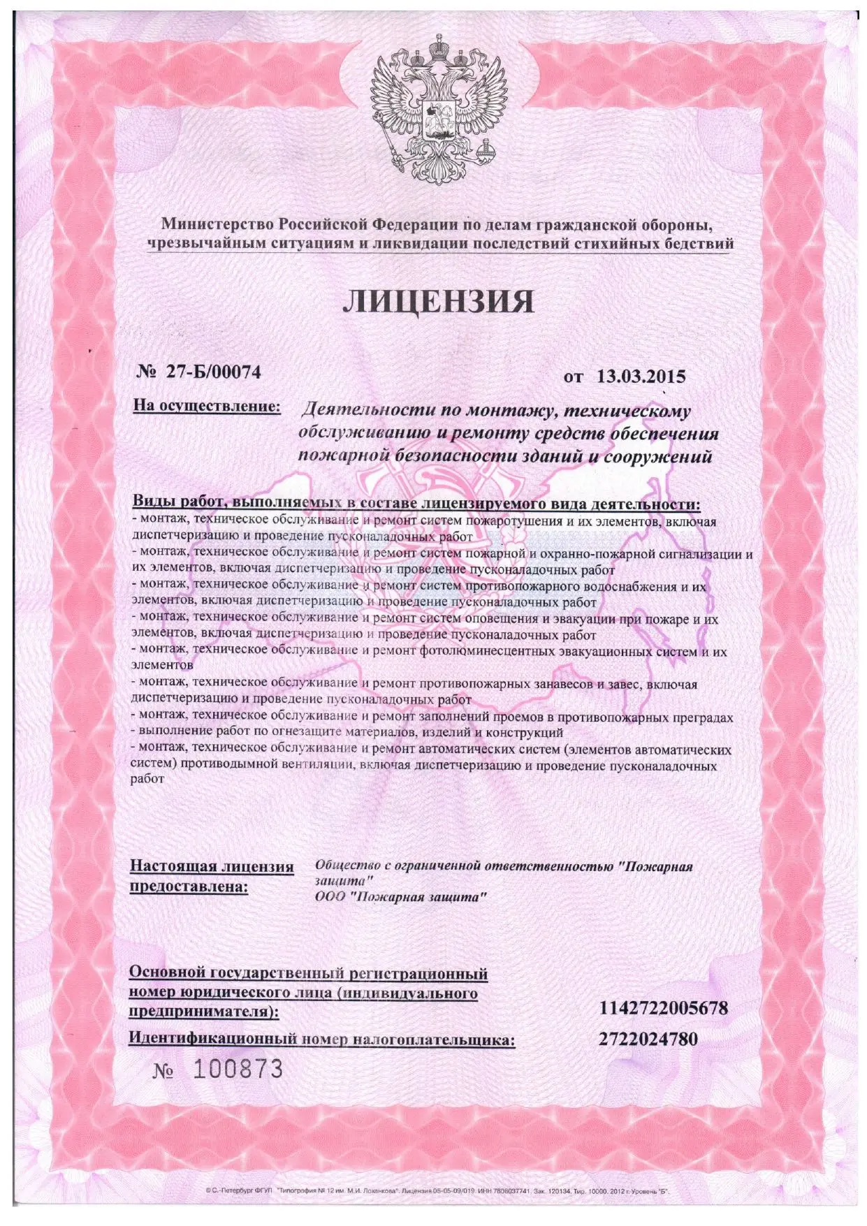 За 19 лет работы у нас сложился постоянный инженерно технический персонал – наши мастера по монтажу противопожарных преград (ворота, двери, окна, шторы) проводили работы на космодроме «Восточный», в главном офисе «Сбербанка» в г. Владивостоке, где мы устанавливали противопожарные стеклянные алюминиевые двери с системой «Антипаника», на Кинотеатре «Хабаровск»- мы смонтировали и до сих пор обслуживаем деревянные противопожарные дымогазонепроницаемые, звукоизоляционные двери; ведущие мастера по монтажу пожарной сигнализации и видеонаблюдения проводили работы на почти самой крайней точке Востока нашей страны, в пос. Беринговском, где в подзорную трубу видна Америка! Кроме того, нами были проведены работы на таких объектах как Арена «ЕРОФЕЙ», ТЦ «МАКСИМОЛЛ, ТЦ «ЭКОДОМ», Онкологический центр в г. Хабаровске, Аэропорт г. Анадыря и многих других.